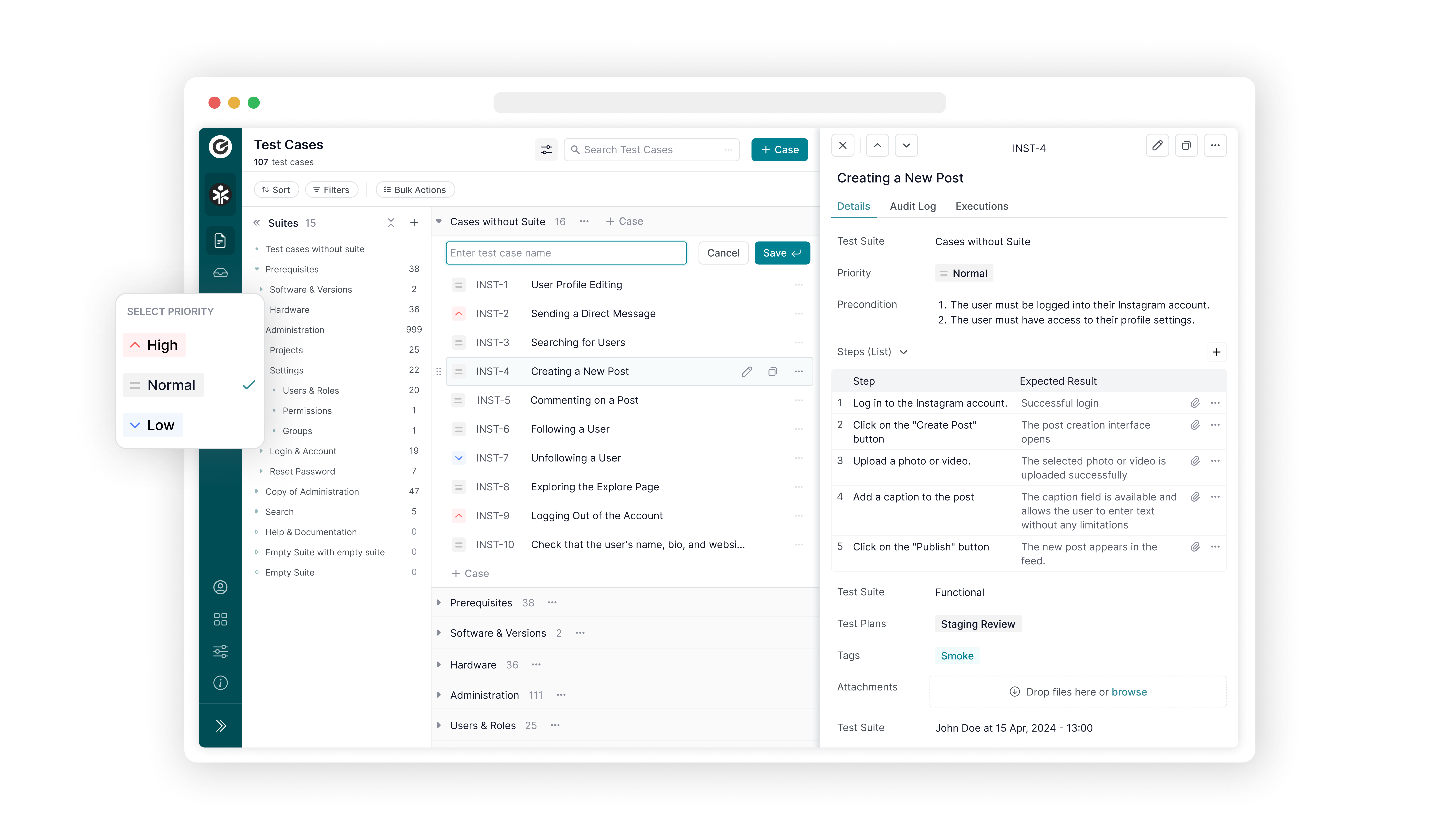 Clarity and speed are at the heart of TestCaseLab. Our team designed the user experience and interface so testers can create cases quickly, navigate projects easily, and collaborate without friction. Every screen and workflow was carefully crafted to reduce time spent on routine actions and keep the focus on software quality.